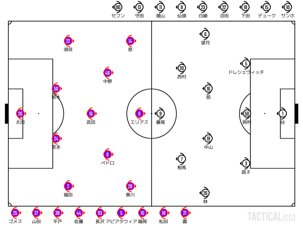 首位の鹿島を追いたい両チームの一戦。やや鹿島が走りつつある状況において、なんとか上位に食らいつくために3ポイントが欲しい両軍である。