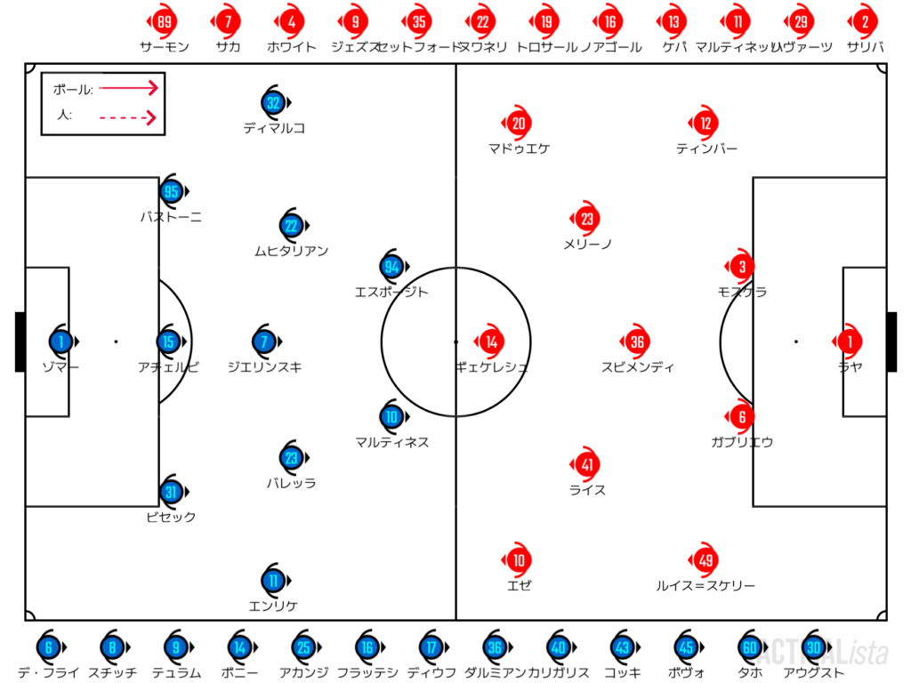 カラバオカップのチェルシー戦、直近のフォレスト戦とメンバーの入れ替えは限定的。3試合セットで同じメンバーに負荷をかけるのは避けたく、それを考えればFA杯でスターターを託した面々に期待はかけたい。ガブリエウ、サリバに休養を与えることができるかはモスケラのコンディション次第だがヌワネリ、ルイス=スケリー、エゼあたりにはプレータイムを与えたいところである。