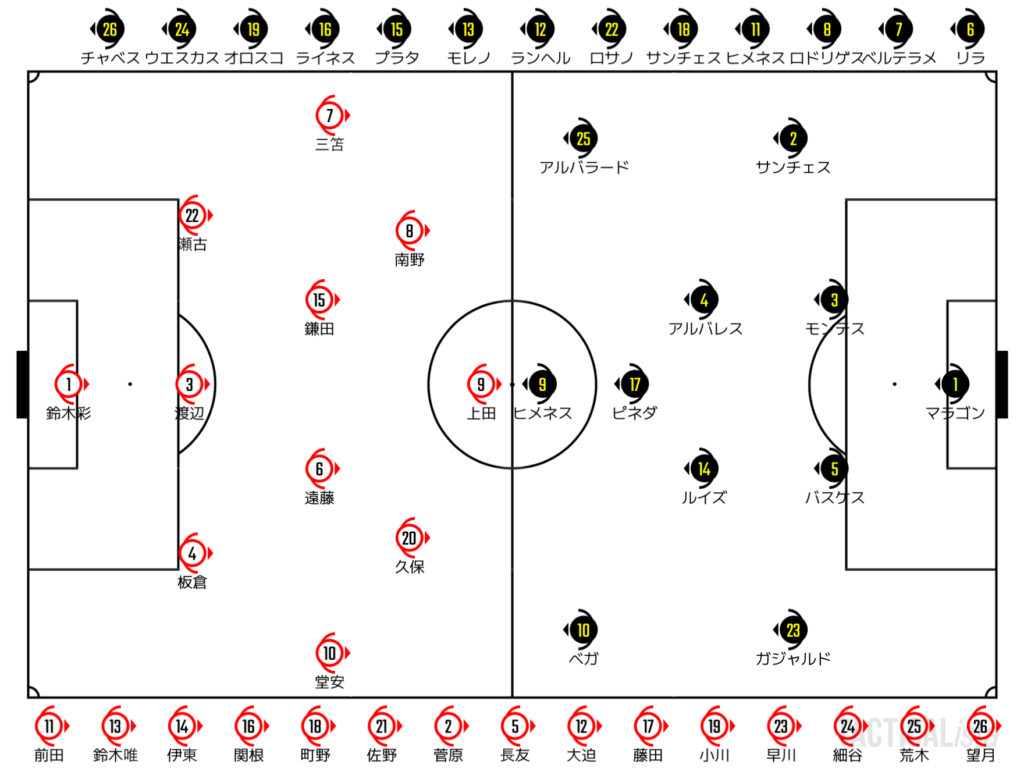 終盤はシャドーに三笘、堂安という幅をとれるキャラクターを投入。左サイドはWBロールの前田との入れ替わりなどが特に見られた。しかし、最後までメキシコの守備を崩し切ることはできず。上田の裏抜けは相手の退場を引き出したが、得点には繋がらなかった。試合はスコアレスドローで幕を閉じることとなった。