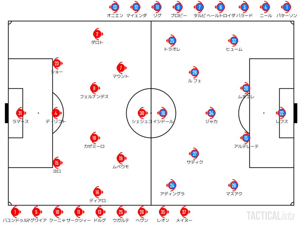 このゴール以降もペースを掴んだのはユナイテッド。一方的な押し込むポゼッションから延々とWBとシャドーから殴り続けていくことでチャンスを作っていく。敵陣でのプレータイムを増やすユナイテッドはセットプレーから追加点。ロングスローからシェシュコがリードを広げる。