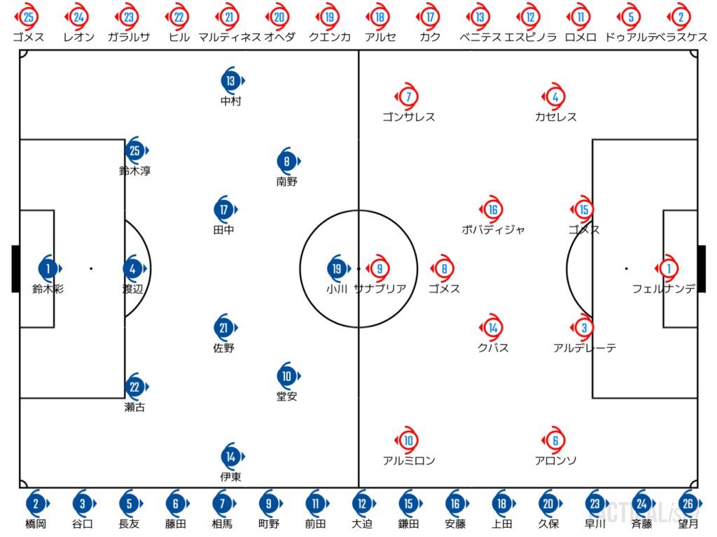 JPN:26′ 小川航基, 90+4’ 上田綺世