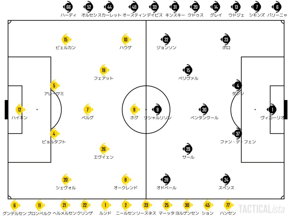 TOT:68′ ファン・デ・フェン, 89′ グンデルセン(OG)