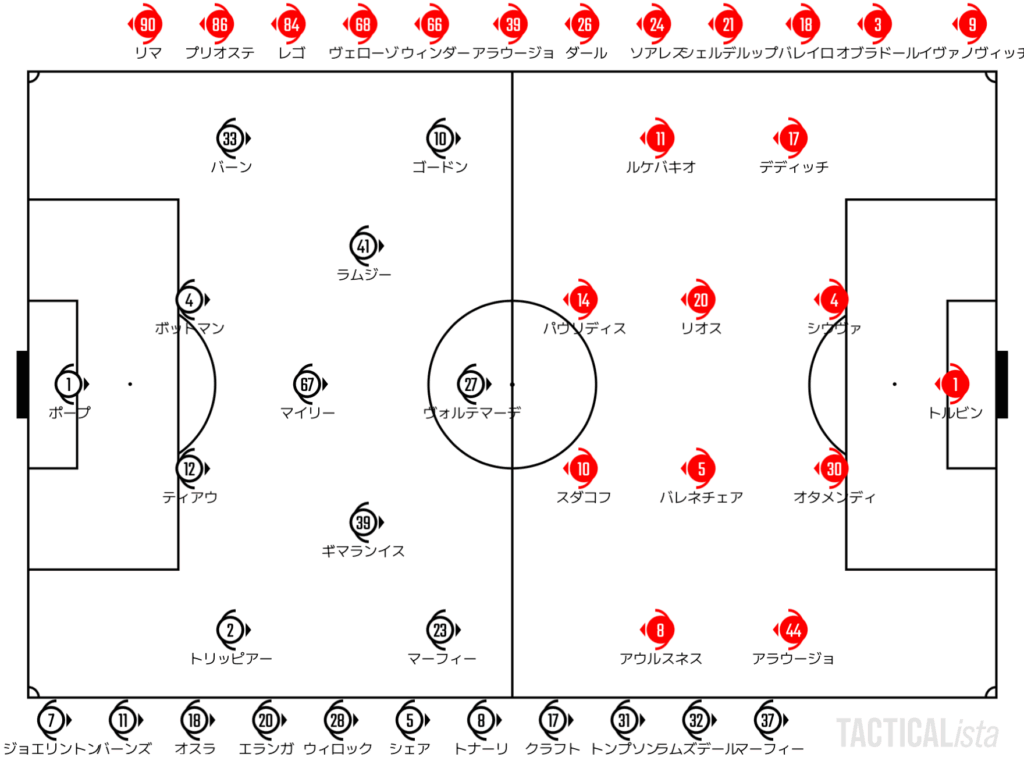 ただ、バイエルンもブルッヘが好戦的である分、ライン間にパスを刺しやすくなる。ジャッカーズも苦しいセーブを強いられるシーンが出てくるが、ファインセーブで何とかしのぐ。だが、そんな奮闘もむなしくバイエルンは追加点。オリーズ→ライマーのところからシュートを放つと、こぼれをジャクソン。心を折る4点目を決める。