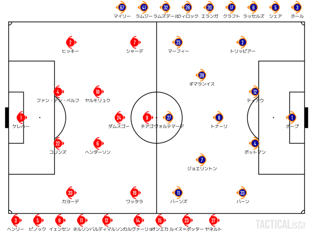 この場面以外の攻撃側の苦しさを見る限りはこの先制点は非常に貴重なように思えた。どちらのチームもなかなか守備の状況がタイトである中でワンチャンスを生かしたニューカッスルのリードでハーフタイムを迎える。