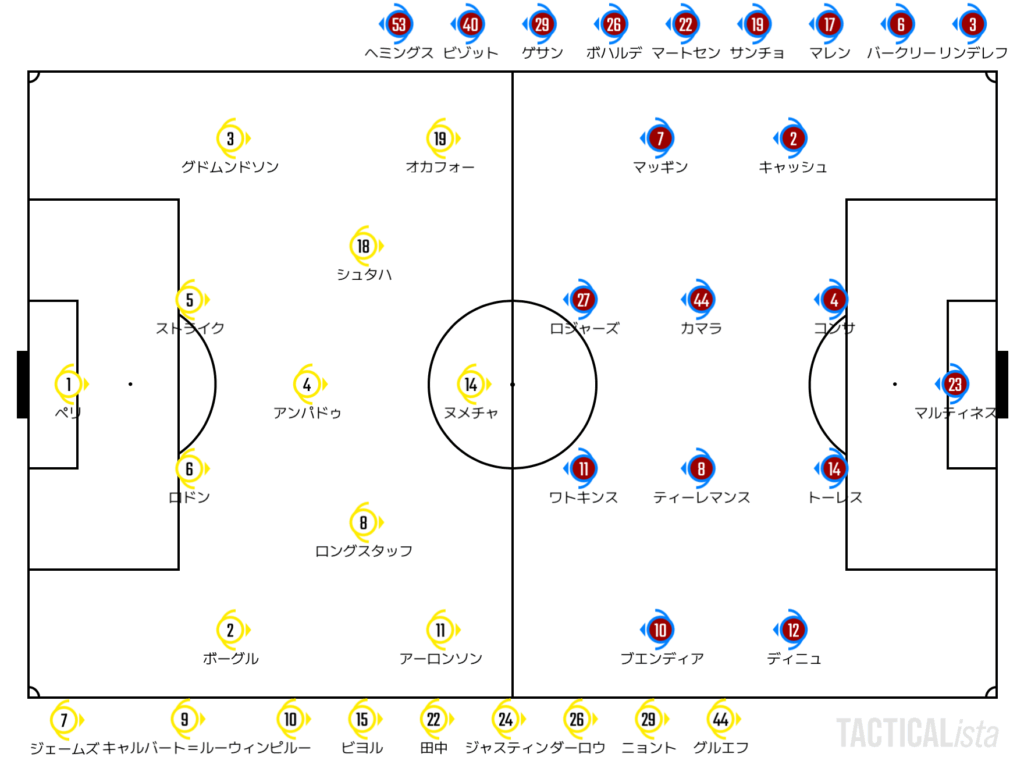 特にアストンビラはその傾向が強かった感があった。前から捕まえに行けず、変なファウルを犯す。そこから許したセットプレーで先制点を許すという悪い流れに飲み込まれた感があった。