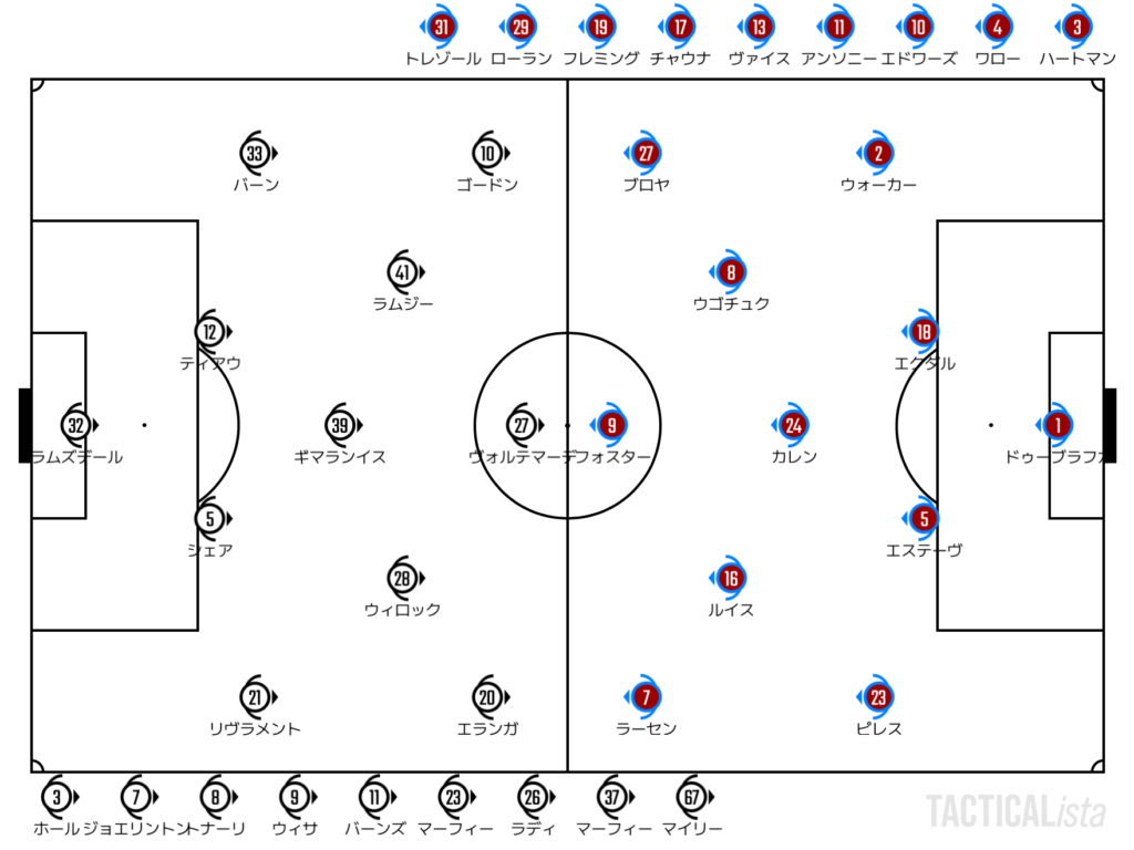 しかし、そのピレスがエランガのスピードに翻弄される形で退場。10人になったバーンリーはこれ以降押し込まれるように。長い追加タイムもバーンリーの守備を叩き続けたニューカッスルはウゴチュクのハンドからPKを獲得。さらに追加点を上乗せすることでリードを広げる。