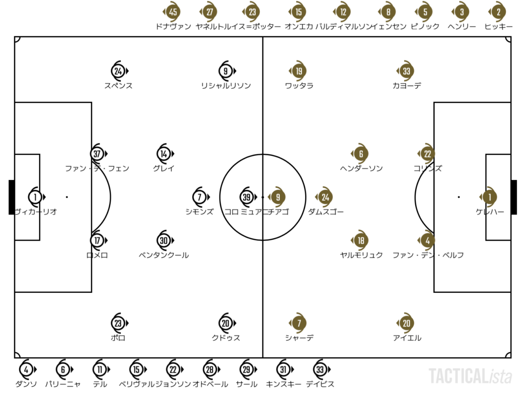ヘンリーの投入で左サイドを活性化したかったブレントフォードだが、後半になっても攻撃のギアはなかなか上がらず。トッテナムはプレータイムを管理を念頭においた余裕の交代で試合をクローズする。