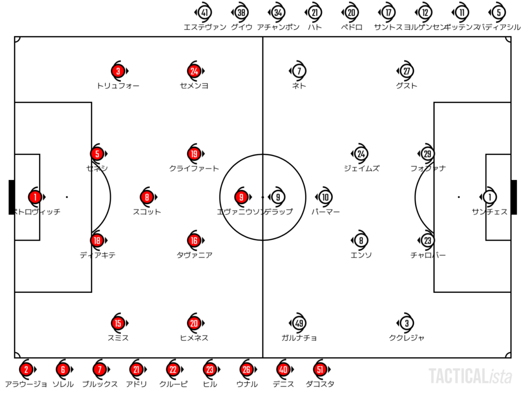 サイドアタッカーのシャープさはややチェルシーの方が上。しかしながら、ボーンマスも中央からスコットがキャリーを行うことでチャンスメイク。フォファナの防波堤としての役割が際立つシーンも目についた。