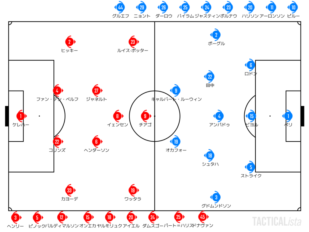 「その気になれば」プレスはハマるが、常にその気というわけではないので保持側のチームはサイドを中心に時間はもらえる展開。しかしながら、保持側がギャップを作るところはうまくいかず苦戦。保持の時間が長いのはブレントフォードだが、その時間の長さを優位につなげることはできず。逆にトランジッションからオカフォーのスピードを生かすことができるリーズの方がブレントフォードのポゼッションを優位につなげていた感があった。
