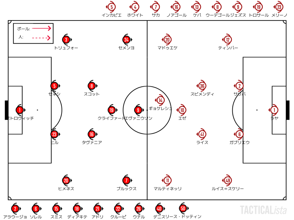 加えて、アーセナル側の事情を踏まえるのであれば、3連戦の3つ目+後ろにはリバプール戦ということでここはターンオーバーも意識したい。ルイス=スケリー、ホワイトというSBを入れ替えるかどうか。セメンヨがどちらに出てくるか?というところもあり、SBの入れ替えを敢行するかは気になるところ。