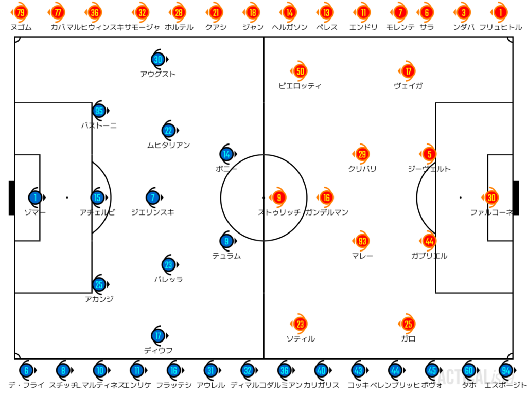 決勝点はその人数の多さを生かした形。最後に決めたのはエスポージト。混戦から見事なゴールを決める。