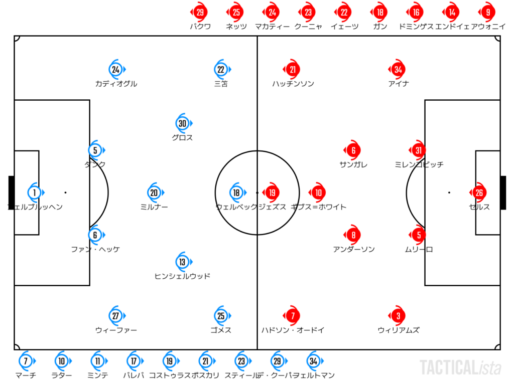 前半の終盤はフォレストはほんのり反撃。左サイドに流れるジェズスなど前線をダイレクトに活かす形を模索。ゴールに近づくシーンはあったが、ネットを揺らすことはできず。試合はブライトンのリードでハーフタイムを迎える。