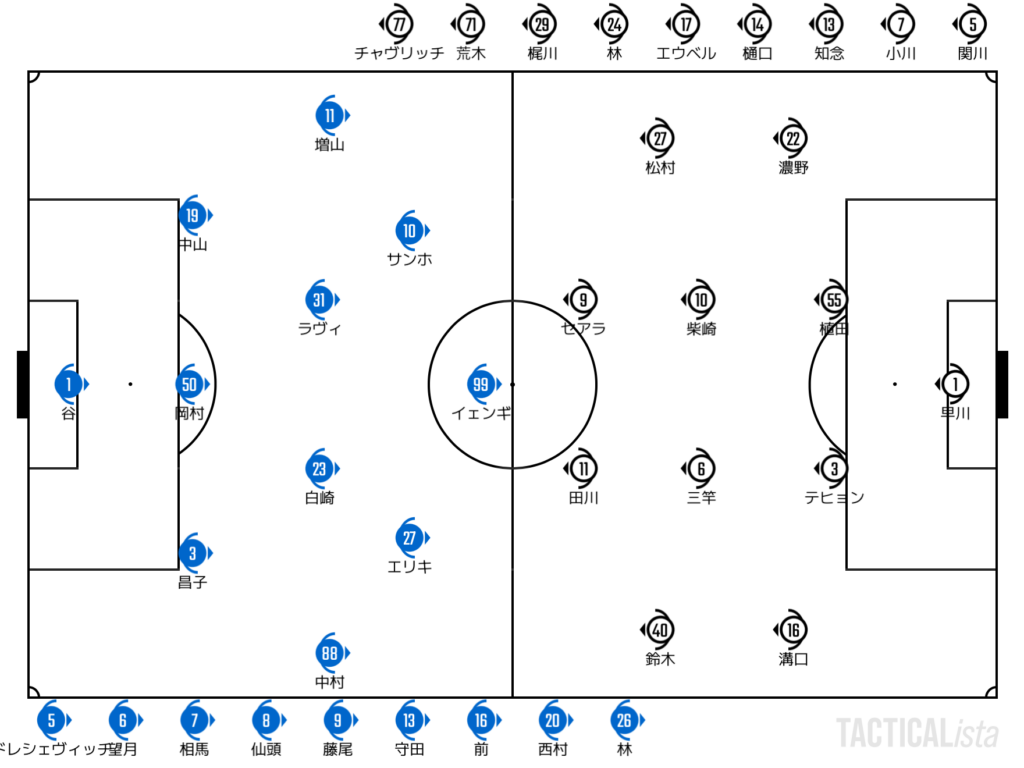 鹿島:5′ 鈴木優磨, 44′ 三竿健斗, 90+1′ アレクサンドル・チャヴリッチ