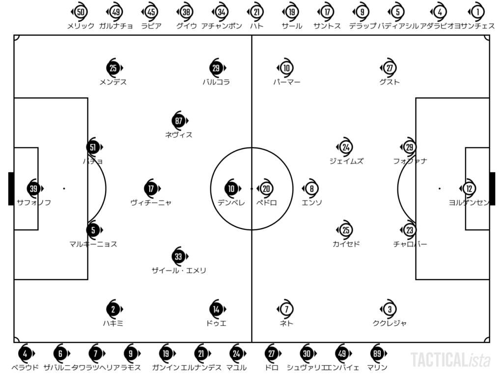 このシュートを止めてカウンターに移行したのはパリ。スピードに乗ったデンベレに追いついたフォファナだが、ヨルゲンセンと共に逆を取られてしまい失点。デンベレが素晴らしいクオリティでカウンターを完結させた。