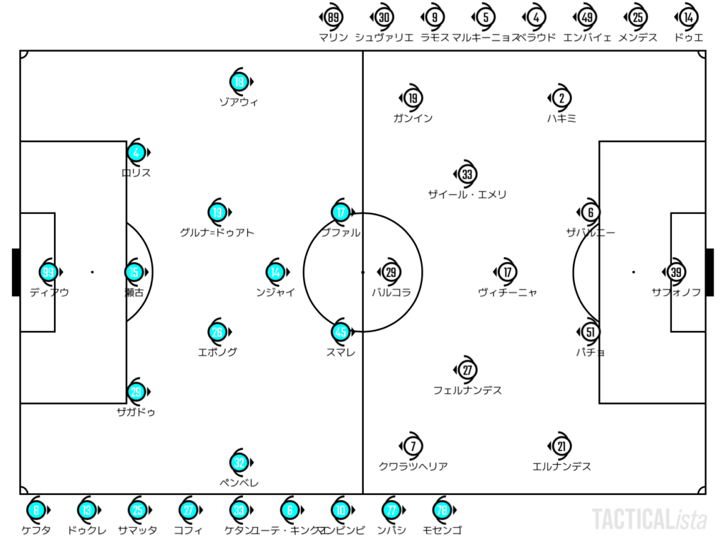ともに保持がベースとなっている両チーム。それならば押し込んだ後のWGの質に勝るパリが優位に立ちそうではあるが、そこまで差が出なかったのがこの試合。それでもパリはやり方を工夫して先制ゴールをゲット。右サイドからのガンインからのクロスをバルコラが仕留めてリードを奪う。