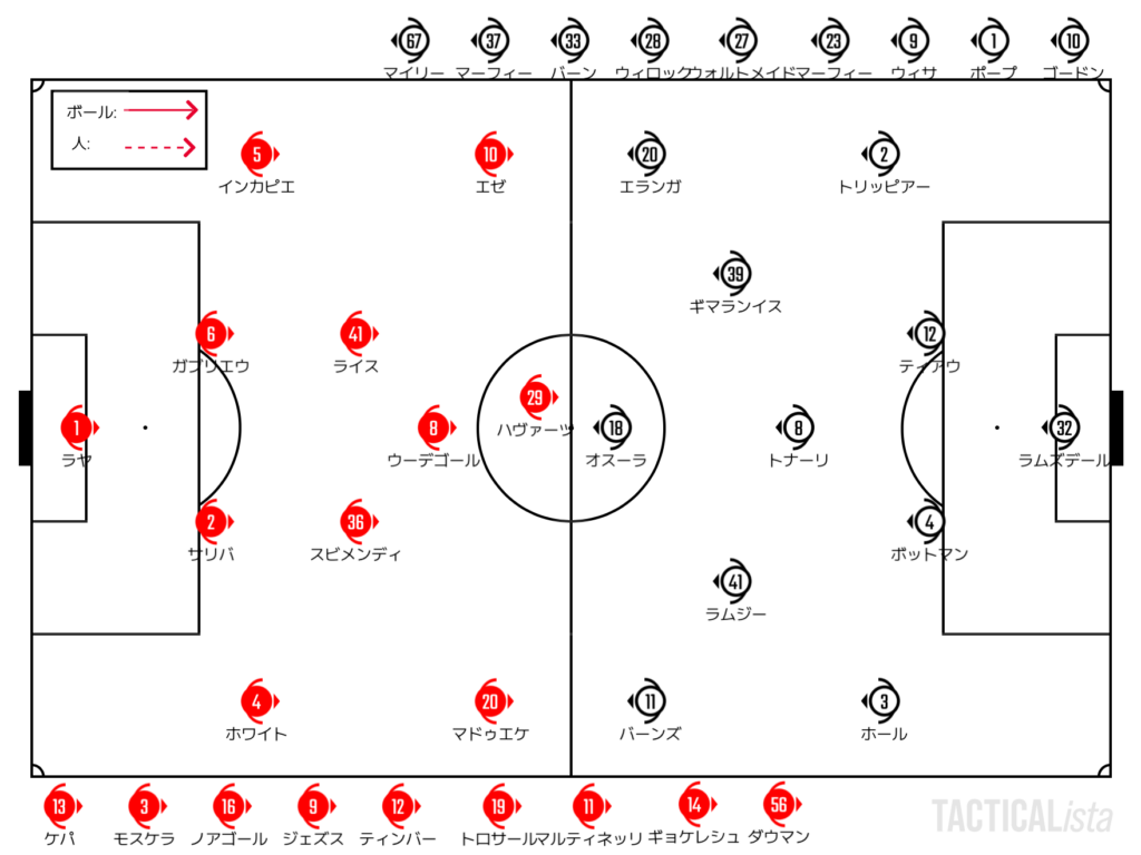 今季のアーセナル基準で見れば、シティ戦の内容は平凡な部分も多かった。評価できるのはライスを軸としたネガトラの強度と、CB陣の1on1対応。この2点は安定している。
