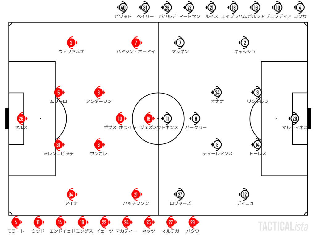 流れを変えたいフォレストはウッドを投入し、前線のターゲットを強化。サイドアタッカーのリカバリーも絡めながら、徐々に押し返す時間帯を作っていく。