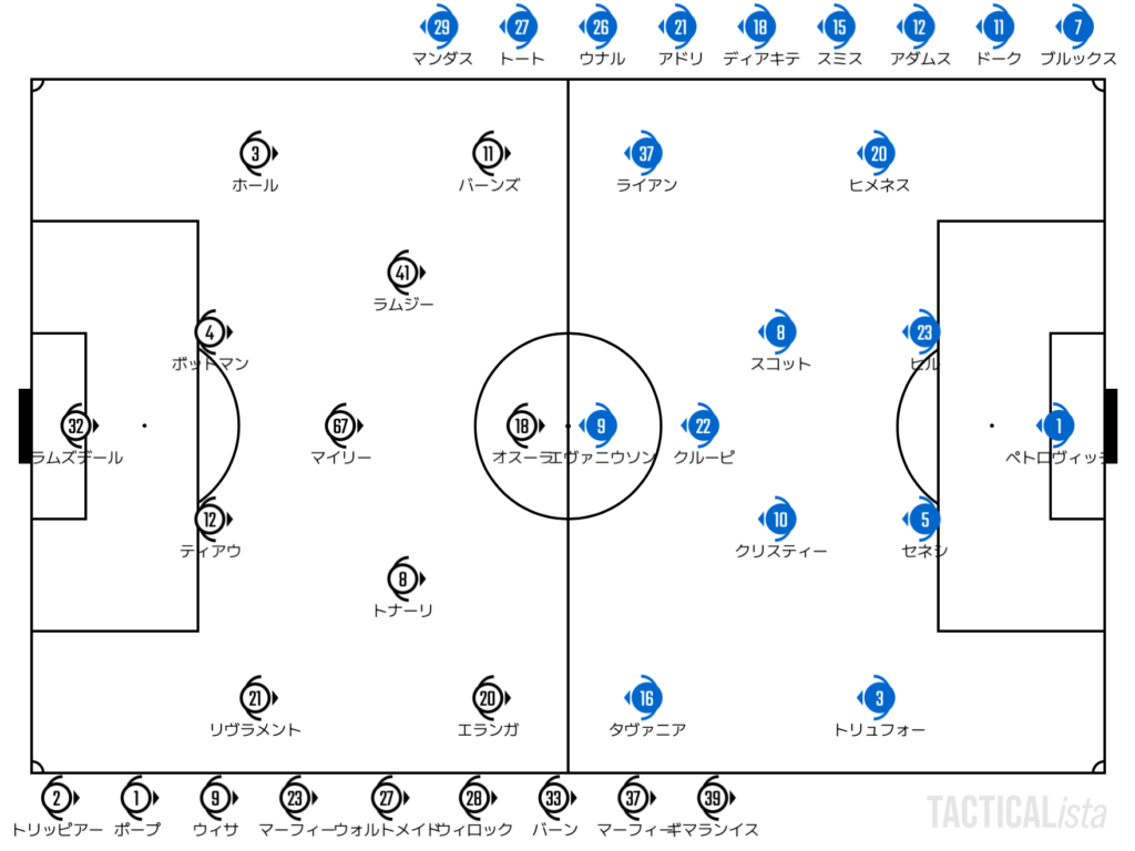 保持の奪い合いからプレス合戦となり、最終的には縦に速い攻撃の応酬となったこの試合。トッテナムは1人のアタッカーが作ったスペースを周囲が使い切れないなど、連動の甘さが目立った印象だ。