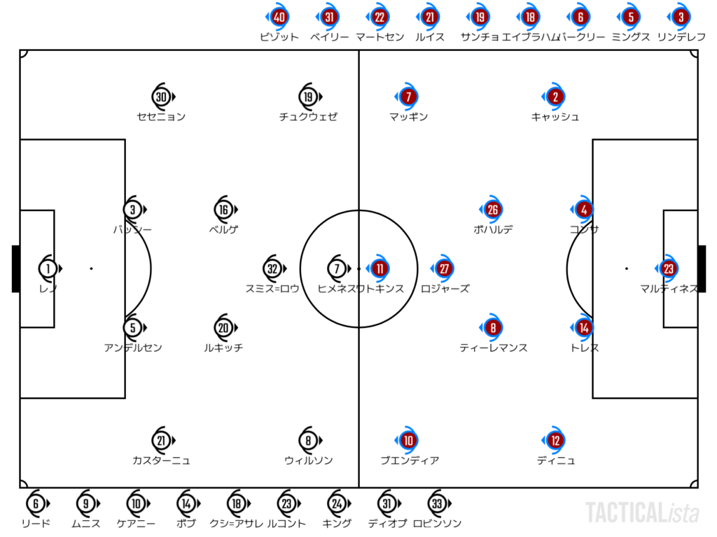 フラムはヒメネスが右に流れる形を作り、起点を作ってクロスまで。しかしながら、ターゲットがボックス内にいないとなると、なかなか効果的に押し込む事ができない。それでも敵陣に運ぶところまでの安定感はフラムの方が上だったという事ができだろう。